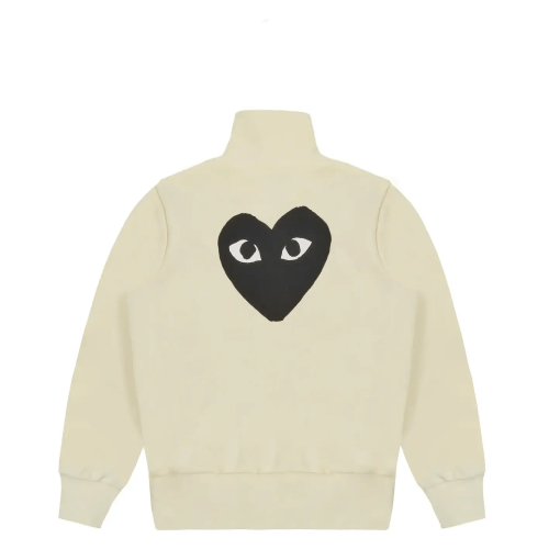 Elevate your everyday style with the CDG Play Sweatshirt with Big Heart Ivory, a perfect blend of comfort, luxury, and modern streetwear aesthetics. Crafted from premium quality cotton, this sweatshirt is designed to keep you cozy while making a bold fashion statement. The standout feature is the iconic oversized red heart logo, positioned prominently on the chest, which instantly distinguishes it as part of Comme des Garçons’ legendary Play collection. Its ivory shade adds a refined touch, making it versatile enough to pair with casual jeans or more elevated pieces.
