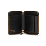 This wallet offers a full zip-around closure, providing both security and convenience. The smooth gold-toned zipper enhances its refined look while keeping your valuables safe. Inside, the thoughtful organization includes card slots, a coin compartment, and ample space for bills and essentials, making it an ideal choice for both daily use and travel. Compact yet spacious, this piece embodies functionality without compromising on style.
