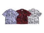 The standout feature of this collection lies in its striking graffiti-inspired print, which covers the shirt in an all-over design. Each of the three distinct colorways—light blue with black print, vibrant red with black print, and classic white with black print—brings a unique personality to the piece. The button-down front, chest pocket, and clean tailoring add structure to the otherwise free-spirited design.